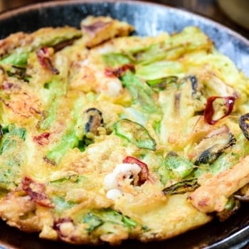 Haemul pajeon is a popular Korean savory pancake made with scallions and seafood. With this easy scallion pancake recipe, you can enjoy your restaurant favorite at home.